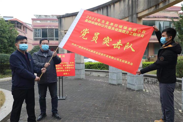 隨后,活動人員來到了賀州市檢察院生活小區(qū),該小區(qū)是正贏實業(yè)公司負責實施的賀州市2022年市直單位城鎮(zhèn)老舊小區(qū)基礎設施和公共服務設施提升工程項目其中一個老舊小區(qū)。在老舊小區(qū)現(xiàn)場,支部開展了黨員對標承諾活動,并成立了2022年市直單位老舊小區(qū)基礎設施和公共服務設施提升工程項目“黨員突擊隊”。柳國忠強調(diào),全體黨員要通過向身邊的優(yōu)秀黨員學習并從中確立標桿和榜樣,在項目建設中以黨員的標準嚴格要求自己,帶頭攻堅克難,沖鋒在項目一線,更好的為人民群眾服務。