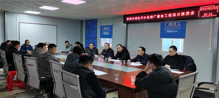 在項(xiàng)目現(xiàn)場(chǎng),黃俊一行仔細(xì)察看了項(xiàng)目復(fù)工復(fù)產(chǎn)情況,并召開賀州市城東污水處理廠建設(shè)工程項(xiàng)目推進(jìn)會(huì)。會(huì)上,黃俊認(rèn)真聽取施工單位關(guān)于項(xiàng)目復(fù)工復(fù)產(chǎn)工作情況及項(xiàng)目推進(jìn)過程中遇到的困難和問題的匯報(bào),并提出指導(dǎo)意見。