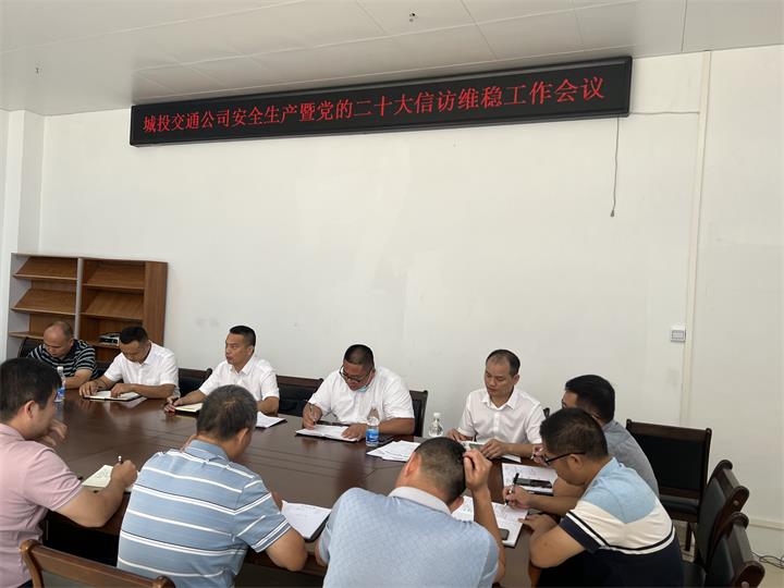 同日,交通公司召開安全生產(chǎn)與黨的二十大信訪維穩(wěn)工作會議。會議指出,做好安全生產(chǎn)與黨的二十大信訪維穩(wěn)工作責(zé)任重大,要站在講政治、顧大局的高度,保持清醒頭腦,認(rèn)清嚴(yán)峻形勢,切實(shí)增強(qiáng)“時時放心不下”的政治責(zé)任感,嚴(yán)而又嚴(yán)、實(shí)而又實(shí)地防風(fēng)險(xiǎn)、保安全、護(hù)穩(wěn)定,堅(jiān)決防止各類安全事故、信訪事件發(fā)生,努力為黨的二十大勝利召開營造安全穩(wěn)定的環(huán)境。