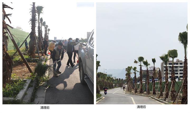 在城投公司黨支部副書記、公司董事長蘭乾雄的帶領下,現(xiàn)場人員分成三個工作組,分別對城東新區(qū)桃源路道路兩旁綠化帶、人行道上的雜草、石塊、淤泥、垃圾進行全面清理整治?;顒又?,大家分工明確、干勁十足,女同志們拿起掃把、鏟子,對人行道上的瓜皮紙屑、枯枝爛葉、淤泥等垃圾進行了仔細清掃,不漏一處,不存死角;男同志們揮舞著鐮刀、鐵鍬,認真清理道路兩旁綠化帶中的雜草、石塊,并將清理出來的垃圾裝入清運車。經(jīng)過全體人員的共同努力,綠化帶和人行道上的雜草、垃圾和散落的石塊被一點點清理出來,道路環(huán)境煥然一新。