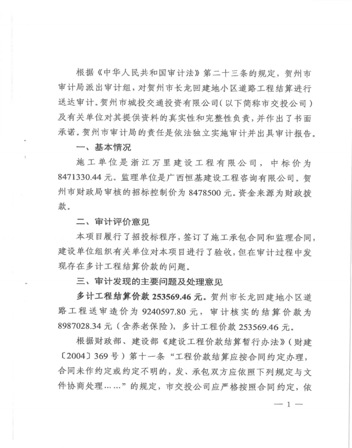 上一篇:城投公司關(guān)于市容市貌綜合提質(zhì)三年行動實施方案建設(shè)項目(2)標審計問題整改情況報告