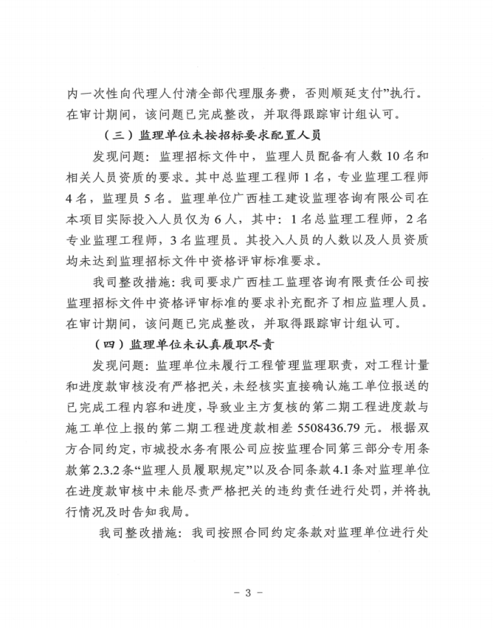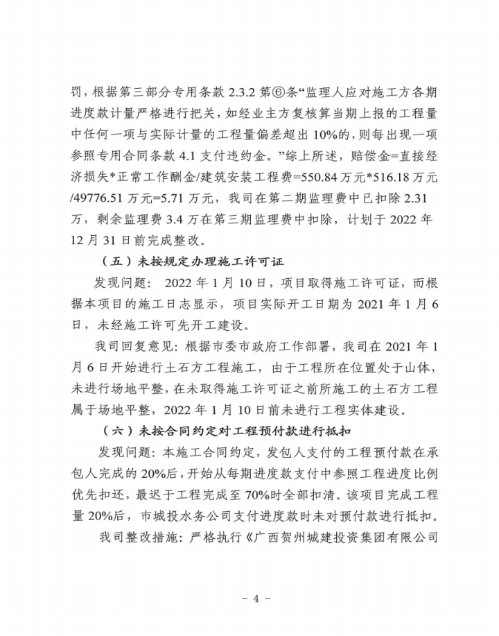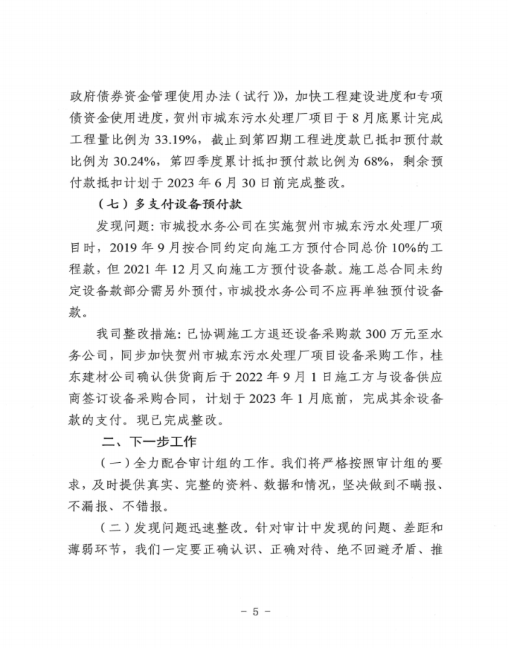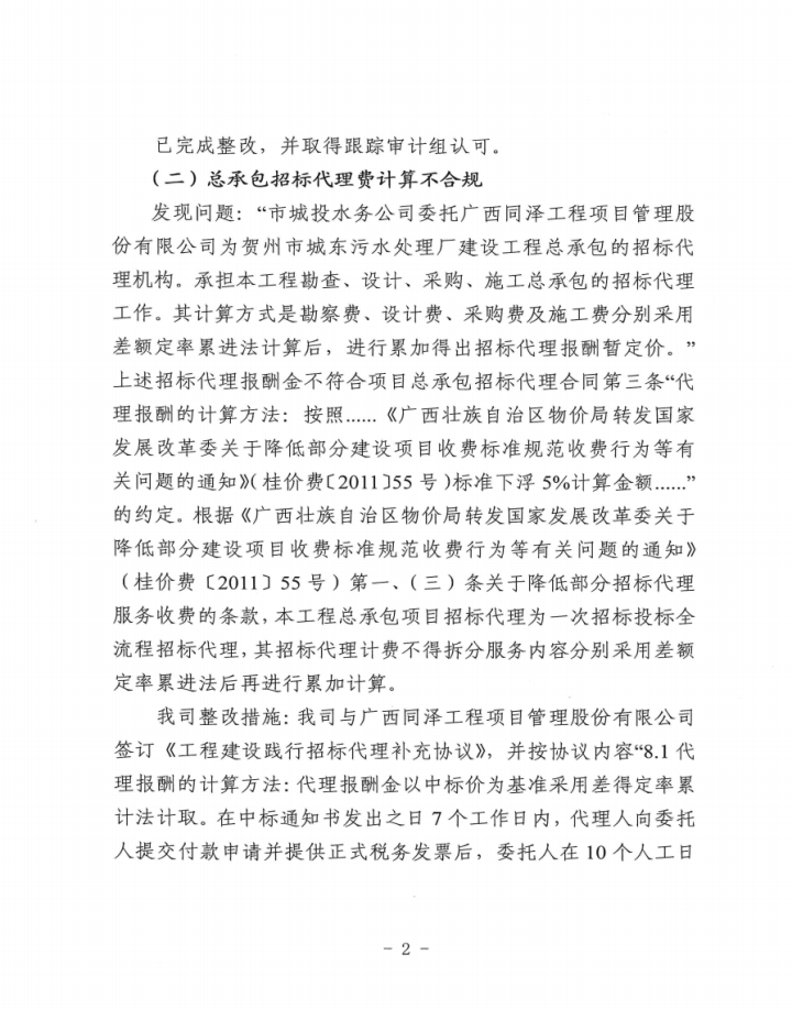 上一篇:關(guān)于賀州市城投公司辦公樓附屬裝修工程結(jié)算審計(jì)發(fā)現(xiàn)問題整改情況的報(bào)告
