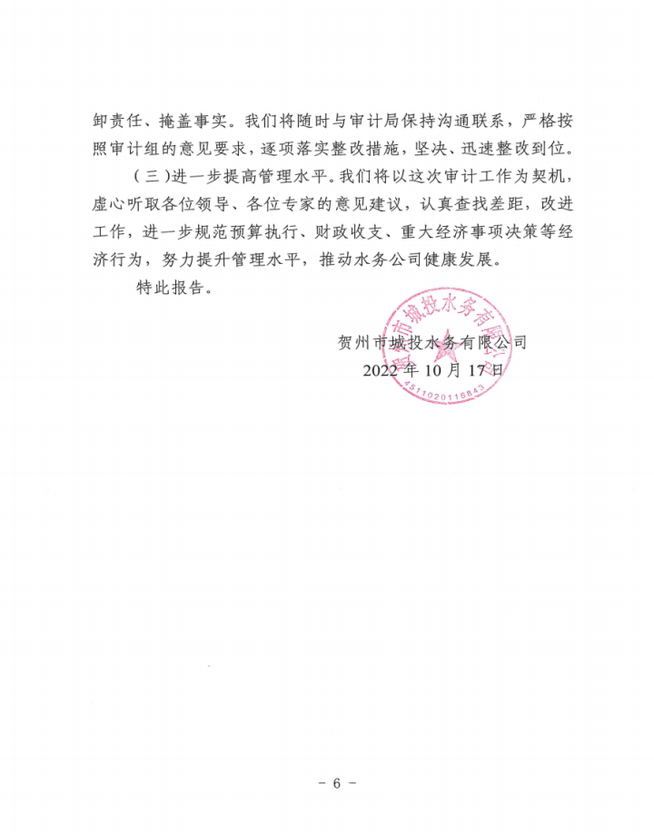下一篇:城投水務(wù)公司關(guān)于賀州市本級2021年度預(yù)算執(zhí)行和決算草案審計(jì)項(xiàng)目審計(jì)查出問題和整改