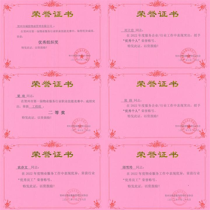服務(wù)質(zhì)量好,形成物業(yè)品牌。城投物業(yè)公司不斷充實(shí)隊(duì)伍力量,公司員工現(xiàn)持有特種設(shè)備安全管理和作業(yè)人員證、消防設(shè)施操作員證、電工證等各類持證人才41人,他們堅(jiān)持在基層第一線砥礪黨性之魂、錘煉黨性之力、夯實(shí)黨性之基,組織專業(yè)化的物業(yè)服務(wù)隊(duì)伍,為小區(qū)老年人及困難居民免費(fèi)提供救助、水電氣暖上門(mén)維修等服務(wù),有效延伸物業(yè)服務(wù)“觸角”。同時(shí),與社區(qū)搭建雙向融合平臺(tái),及時(shí)為居民提供社區(qū)動(dòng)態(tài)、物業(yè)服務(wù)、惠民政策等服務(wù),服務(wù)質(zhì)量得到業(yè)主一致好評(píng)。近年來(lái),多名員工榮獲賀州市物業(yè)服務(wù)管理行業(yè)協(xié)會(huì)“優(yōu)秀管理干部”“三八紅旗手”“優(yōu)秀員工”“行業(yè)技能競(jìng)賽優(yōu)秀個(gè)人”榮譽(yù)稱號(hào)。